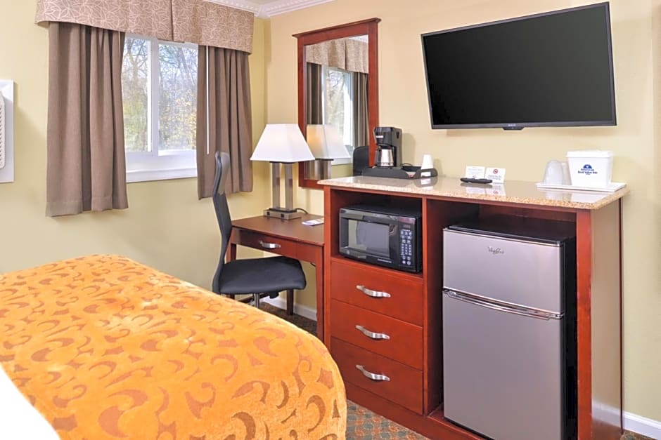 This room features a flat-screen TV, a microwave, and a refrigerator.